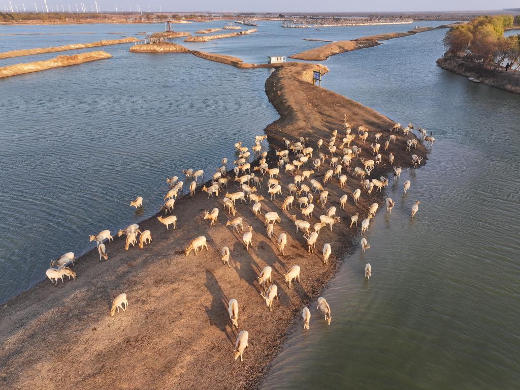 麋鹿种群扩张也带来了环境超载、部分植被退化等“甜蜜烦恼”。为此,保护区已开展麋鹿迁地保护实验,向更多适合麋鹿生长的地方播撒生物多样性的“种子”。